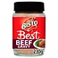 Ingredientes: maltodextrina, almidón de patata, sal, aceites vegetales (palma, colza), colorante (caramelo amoniacal), potenciadores del sabor (glutamato monosódico, 5’-ribonucleótidos disódicos), aromas, extracto de ternera en polvo (1%) [maltodextrina, extracto de ternera], cebolla en polvo, emulgente (lecitina de SOJA), cloruro potásico, extracto de pimienta negra, aceite de cebolla, extracto de romero.