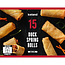 harina de TRIGO, pato (19%), cebolla, salsa hoisin (agua, azúcar, salsa de SOJA (agua, SOJA, harina de TRIGO, sal), vinagre blanco, almidón de tapioca modificado, sal, ajo en polvo, aceite de semilla de SÉSAMO, colorante: caramelo natural; espesante: goma xantana; especias (anís, anís estrellado, canela, clavo, hinojo)), aceite de SOJA, cebolleta (5%), almidón de maíz, ajo, aceite de semilla de SÉSAMO, sal, almidón de patata.. alérgenos: TRIGO, SOJA, sesamo