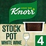 Cubitos de Caldo de Vino Blanco. Ingredientes: agua, extracto de vino blanco sin alcohol (14%), sal, azúcar, aromas, cloruro de potasio, extracto de levadura, agentes gelificantes (goma xantana, goma de algarrobo), zumo de limón en polvo (maltodextrina, zumo de limón).