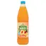 Concentrado de Bebida de Melocotón y Cebada. Ingredientes: agua, zumo de melocotón a partir de concentrado (10%), ácidos (ácido málico, ácido cítrico), regulador de acidez (citratos de sodio), extracto de cebada, aroma, edulcorantes (acesulfamo K, sucralosa), conservadores (sorbato potásico, metabisulfito de sodio), estabilizantes (carboximetilcelulosa, goma xantana, goma de acacia, ésteres de glicerol de resinas de madera), antioxidante (ácido ascórbico), extractos de frutas y hortalizas (zanahoria, grosella negra), colorante (carotenos). alérgenos: cebada.
