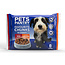 trozos con pollo: carne y derivados animales (incluido pollo 4%), cereales, derivados de origen vegetal, minerales, aceites y grasas, azúcares.