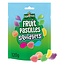 Caramelo Blando con Sabor a Frutas. Ingredientes: jarabe de glucosa, azúcar, gelatina, almidón, zumos concentrados de frutas y verduras (0,9%) (naranja, grosella negra, fresa, lima, limón, zanahoria), ácidos (ácido cítrico, ácido málico, ácido acético), aromas naturales, colorantes (zanahoria negra, curcumina, carotenos, extracto de pimentón), aroma natural de naranja, concentrados vegetales (cártamo, hibisco), grasas vegetales (coco, colza, girasol), concentrado de espirulina, regulador de acidez (citrato sódico), fibra de maíz, emulgente (lecitinas).