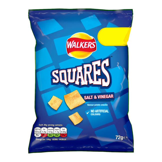 Ingredientes: gránulos de patata, aceite de girasol, almidón de patata, aroma sal y vinagre [aroma, ácido (ácido cítrico), azúcar, potenciadores del sabor (glutamato monosódico, guanilato disódico), cloruro potásico], maltodextrina, sal.
