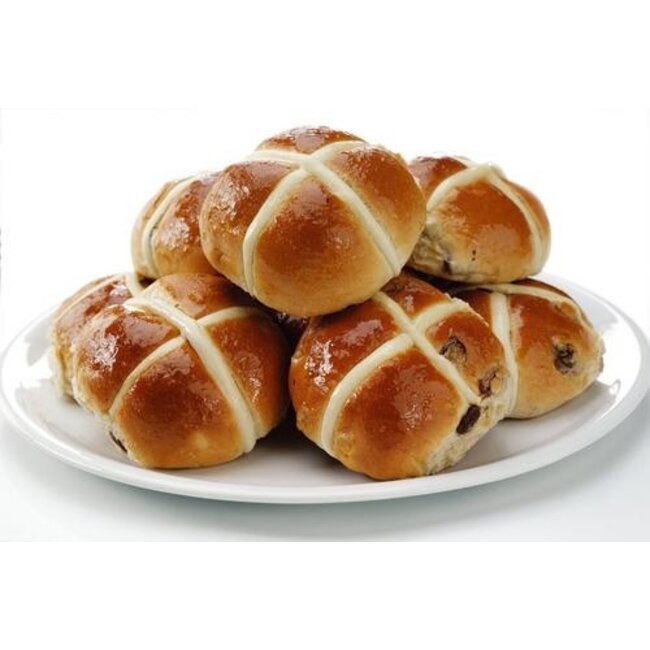 Bollete: harina de TRIGO (harina de trigo, carbonato cálcico, niacina, tiamina, hierro), agua, pasas sultanas (15%), grosellas (5%), levadura, azúcar, fruta confitada (2,5%) [piel de naranja, jarabe de glucosa, piel de limón, azúcar, regulador de acidez (ácido cítrico)], gluten de TRIGO, harina de TRIGO, aceite de colza, mezcla de especias molidas (1,0%) [canela, semilla de cilantro, alcaravea, clavo, hinojo, jengibre, nuez moscada, cúrcuma], sal, emulgentes (mono y diglicéridos de ácidos grasos, ésteres acetil tartáricos de mono y diglicéridos), agente de tratamiento de la harina (ácido ascórbico), gasificante (bicarbonato sódico).