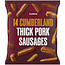 Salchichas de cerdo. ingredientes: carne de cerdo (56%), agua, pan rallado (harina de trigo [harina de trigo, carbonato de calcio, hierro, niacina, tiamina], sal), grasa de cerdo, corteza de cerdo, sal, especias (pimienta negra, pimienta blanca, macis), dextrosa, emulsionante (difosfatos), conservador (metabisulfito de sodio), antioxidante (ascorbato de sodio), extractos de especias (pimienta, macis, nuez moscada, jengibre, cilantro), tripa de colágeno de vacuno. alérgenos: trigo, sulfitos.