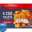 Filetes de Bacalao Rebozados. Ingredientes: bacalao (pescado) (52%), harina de trigo (harina de trigo, carbonato de calcio, hierro, niacina, tiamina), agua, aceite de colza, sal, almidón de trigo, gluten de trigo, gasificantes: difosfatos, carbonatos de sodio, carbonatos de amonio; colorante: extracto de pimentón; aceite de coco, dextrosa, harina de maíz, almidón de maíz, maltodextrina, extracto de levadura, extracto de pimienta negra, extracto de cúrcuma, aceite de girasol, emulgente: lecitinas de girasol; proteína de guisante. alérgenos: pescado, trigo