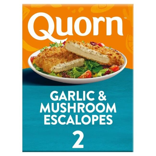 Escalopes de Ajo y Champiñones. Ingredientes: micoproteína (37%), harina de trigo (harina de trigo, calcio, hierro, niacina y tiamina), queso blando semigraso (leche) (13%) (queso blando semigraso (leche), almidón modificado, sal marina), aceite de colza, queso (leche) (6%), clara de huevo de gallinas camperas rehidratada, champiñones (3%), agua, almidón de trigo, proteína de leche, aroma natural, puré de ajo (0,8%), sal, sémola de trigo duro, agentes de firmeza (cloruro de calcio, acetato de calcio), levadura, gelificante (pectina), gasificante (carbonato de amonio). alérgenos: TRIGO, LECHE, HUEVO.