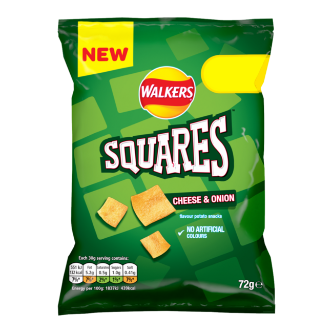 Ingredientes: gránulos de patata, aceite de girasol, aroma queso y cebolla [permeado de suero (LECHE), sal, azúcar, aroma (contiene LECHE), cebolla en polvo, reguladores de la acidez (ácido cítrico, ácido málico), proteína de suero (LECHE), ajo en polvo, queso en polvo (LECHE), suero en polvo (LECHE), leche desnatada en polvo (LECHE), colorantes (annatto bixina, extracto de pimentón)], sal.